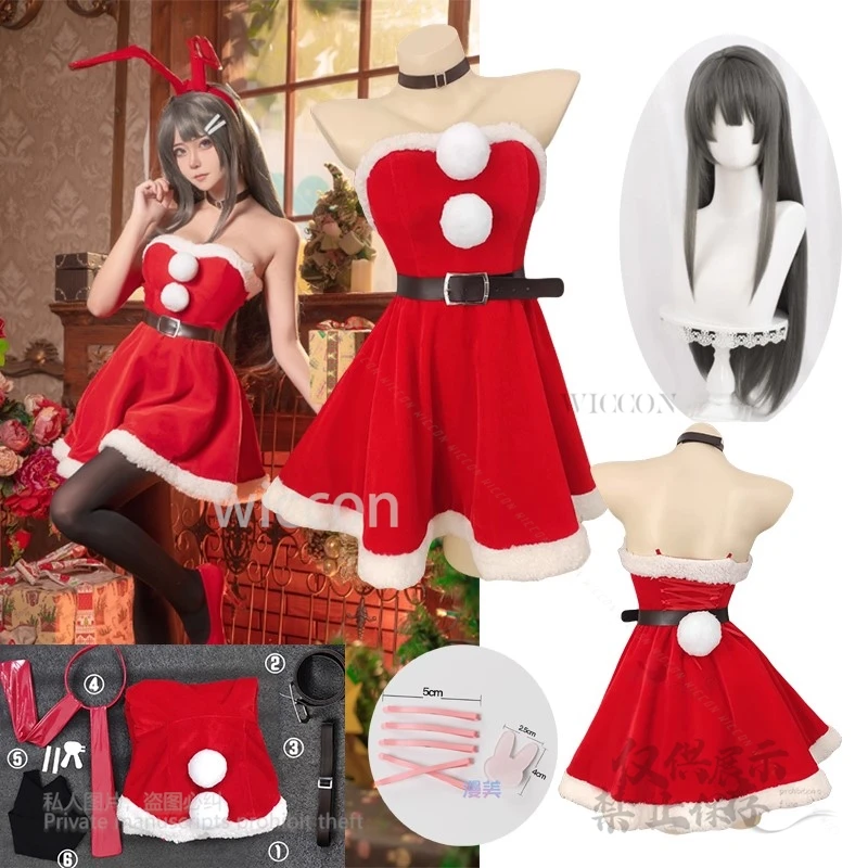 Аниме Sakurajima Mai Косплей Сексуальный Кролик Красный Костюм Свинья Голова Мальчик Наряд Обувь Парик Заколка Для Волос Женская Роль Хэллоуин Рождественская Вечеринка
