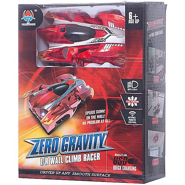Антигравитационная машинка Taigen «Стенолаз» красная — уникальная машинка, которая может не просто ездить вперед, но и кататься по потолку и стенам. Управление машинкой осуществляется при помощи пульта управлений. Она способна ездить по абсолютно любой поверхности: стеклу, бетону, дереву. Во время езды она прижимается к поверхности, после чего между поверхностью и дном автомобиля создается вакуум, что и не дает игрушке упасть.