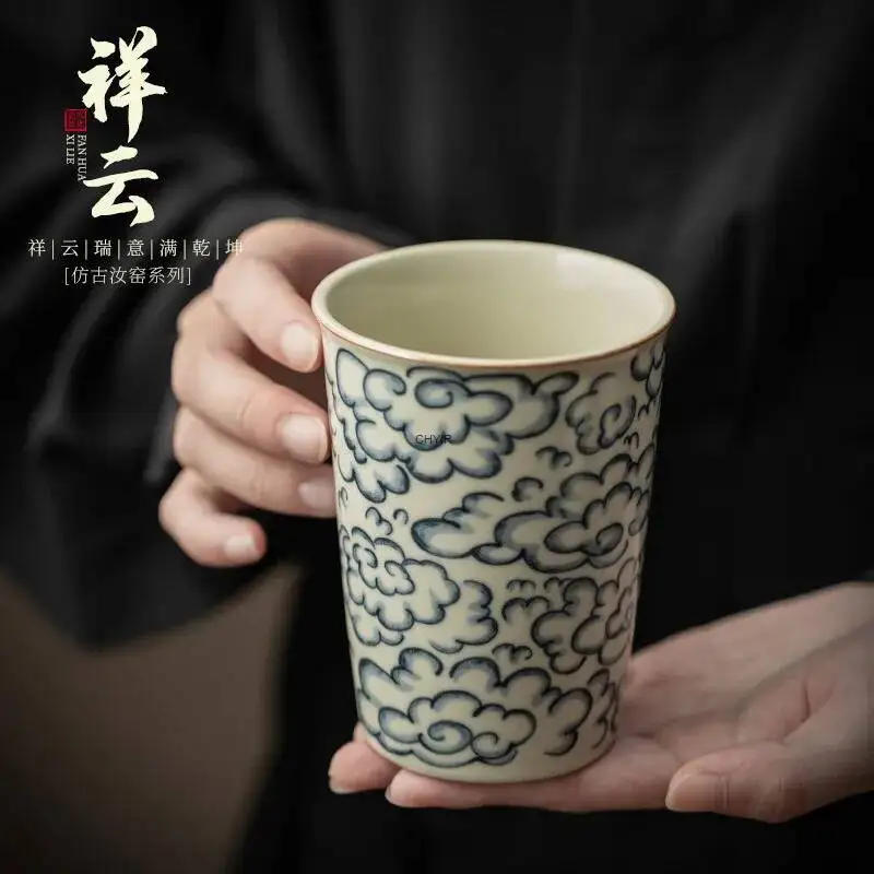 Антикварная чашка Ru Kiln с облачным узором, чашка для кока, потрескивающаяся ручная чашка, бытовая керамическая чашка для чая, большая емкость
