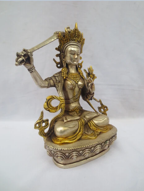 Античная Медная Коллекционная декоративная старинная ручная работа 8,5 дюймов тибетская Серебряная резная Золотая позолоченная статуя Будды с ножом/буддийская скульптура