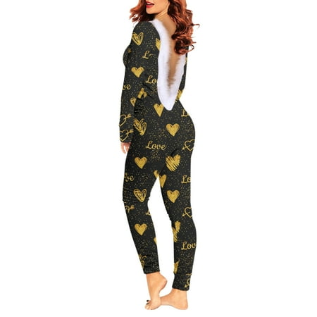 Workout Clothes Workout Sets For Women Women Printing V Neck Long Sleeve Open Back Furry Adult Pajamas Jumpsuits Bodysuit Playsuit Romper Jumpsuits For Women