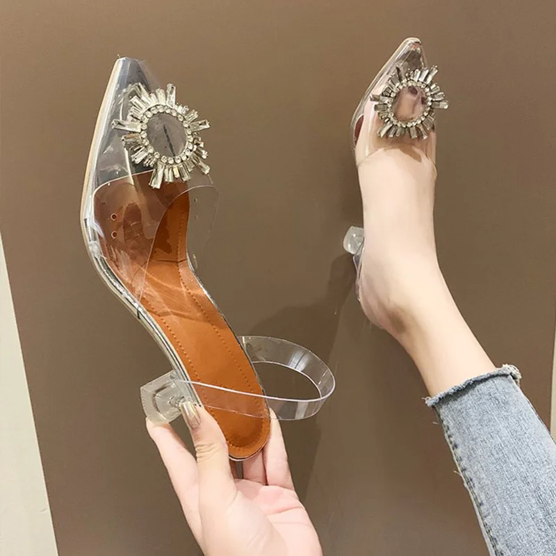 Ladies Sandals French High Heels Pearl Color Matching Joker Temperament 6cm High-heeled Sandals
