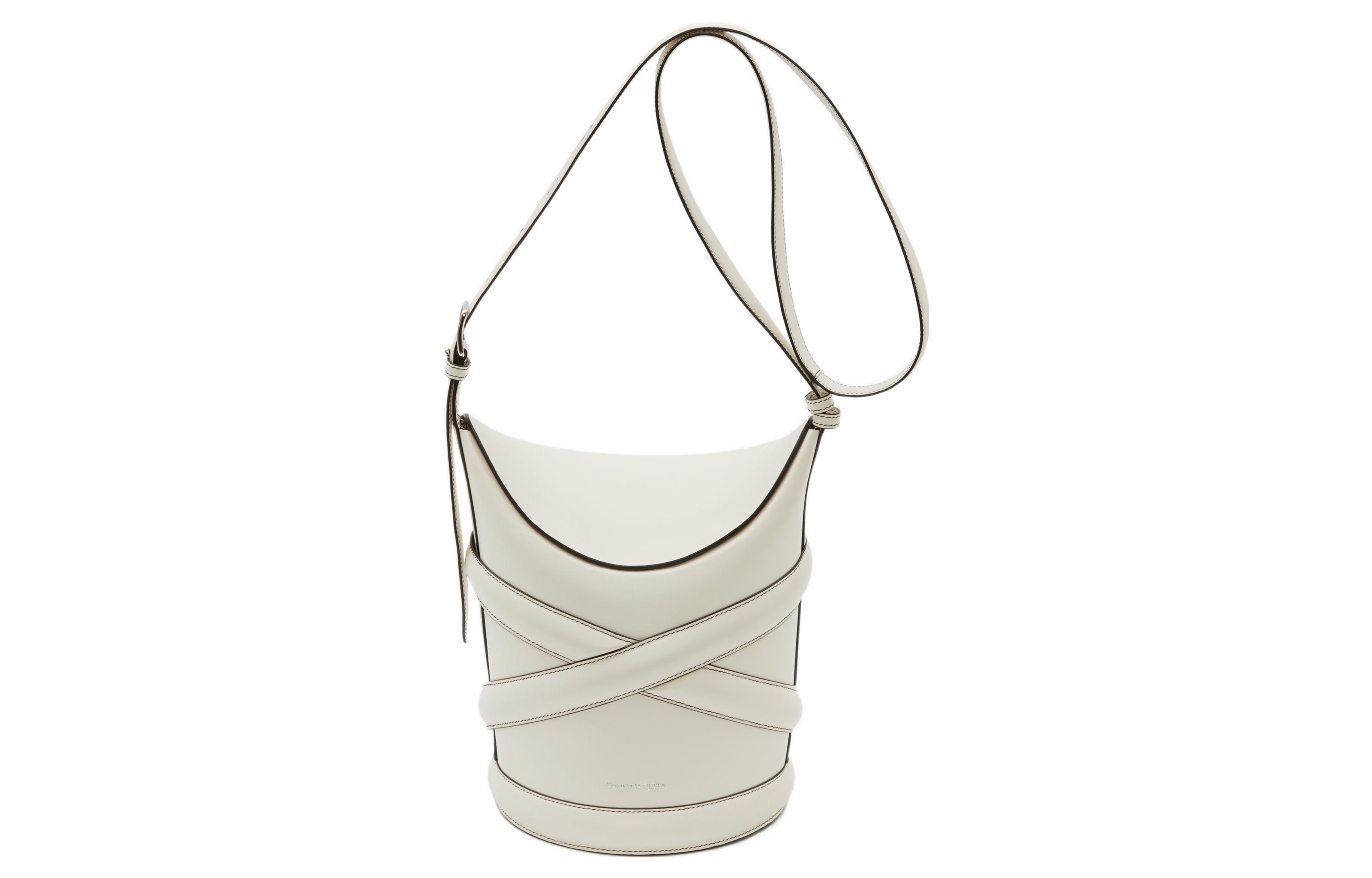 Сумка-ведро THE CURVE BAG из телячьей кожи, плечевая сумка, мужская сумка через плечо белого цвета Alexander McQueen