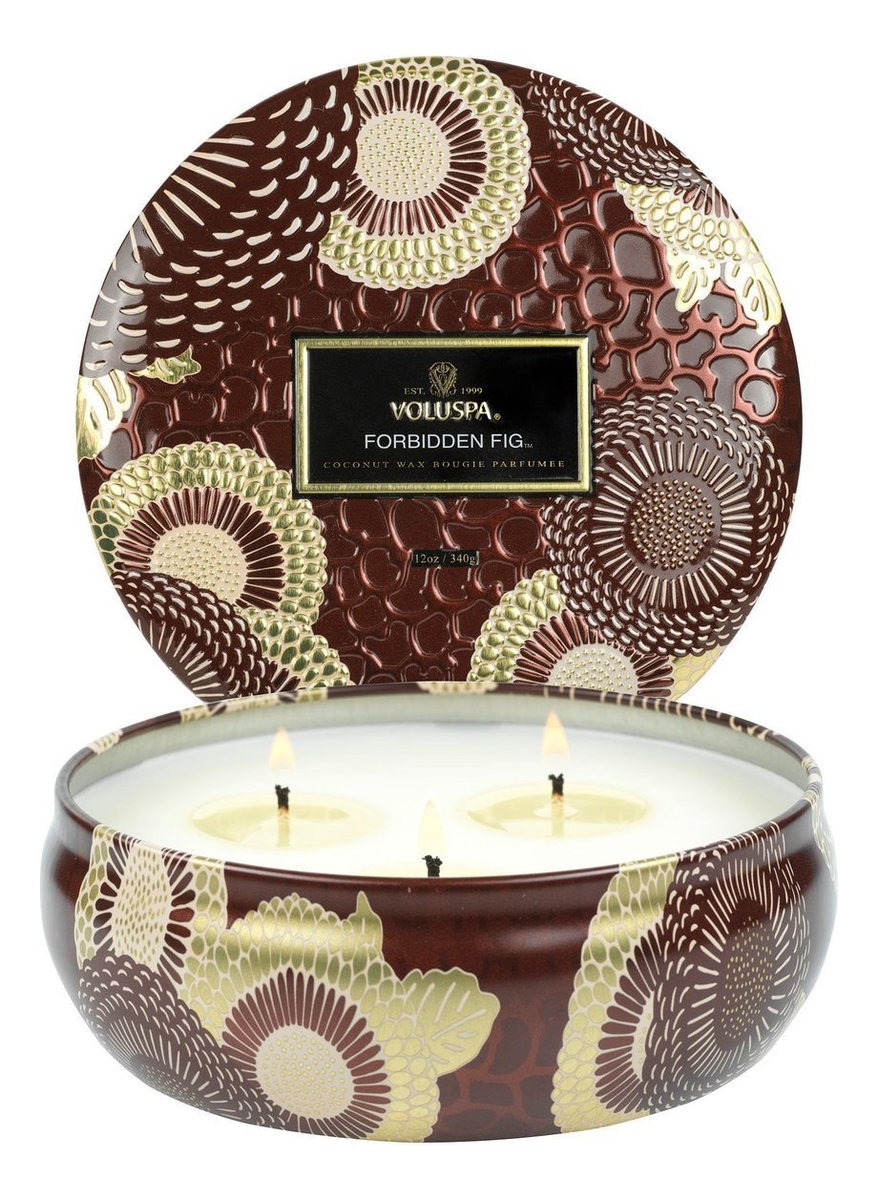 Ароматическая свеча Forbidden Fig (Запретный плод): свеча в алюминиевой банке с 3-мя фитилями 340г, Ароматическая свеча Forbidden Fig (Запретный плод)