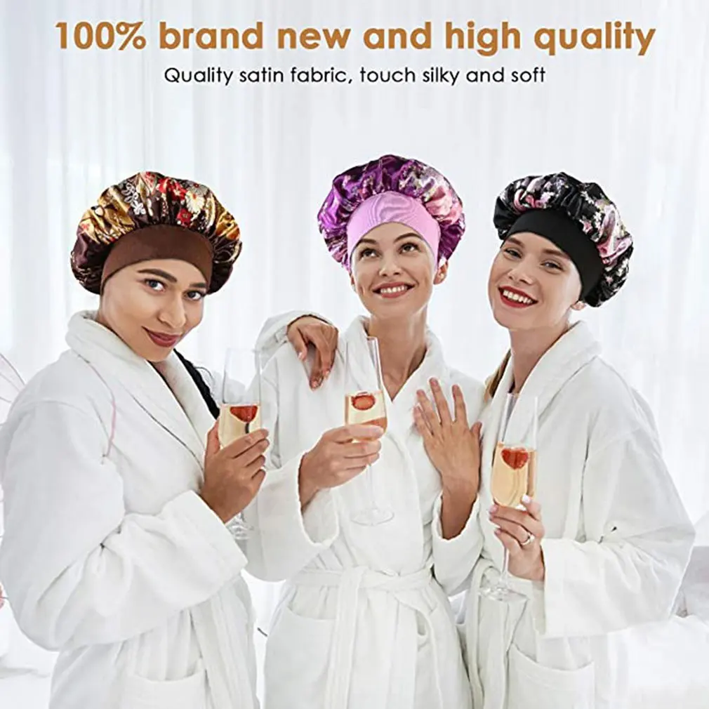 Атласная Ночная шляпа женская мягкая эластичная широкая Ночная атласная шляпа подходит для сна широкополая повязка на голову с принтом жен...