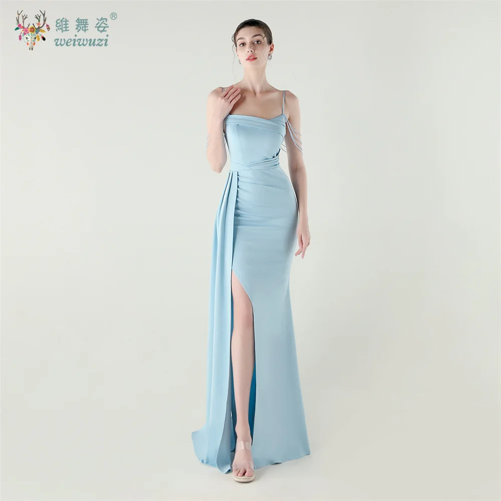Атласные бретели Длинные элегантные вечерние платья Платья подружки невесты с открытыми плечами День рождения Разделенные платья Сексуальное платье с открытой спиной