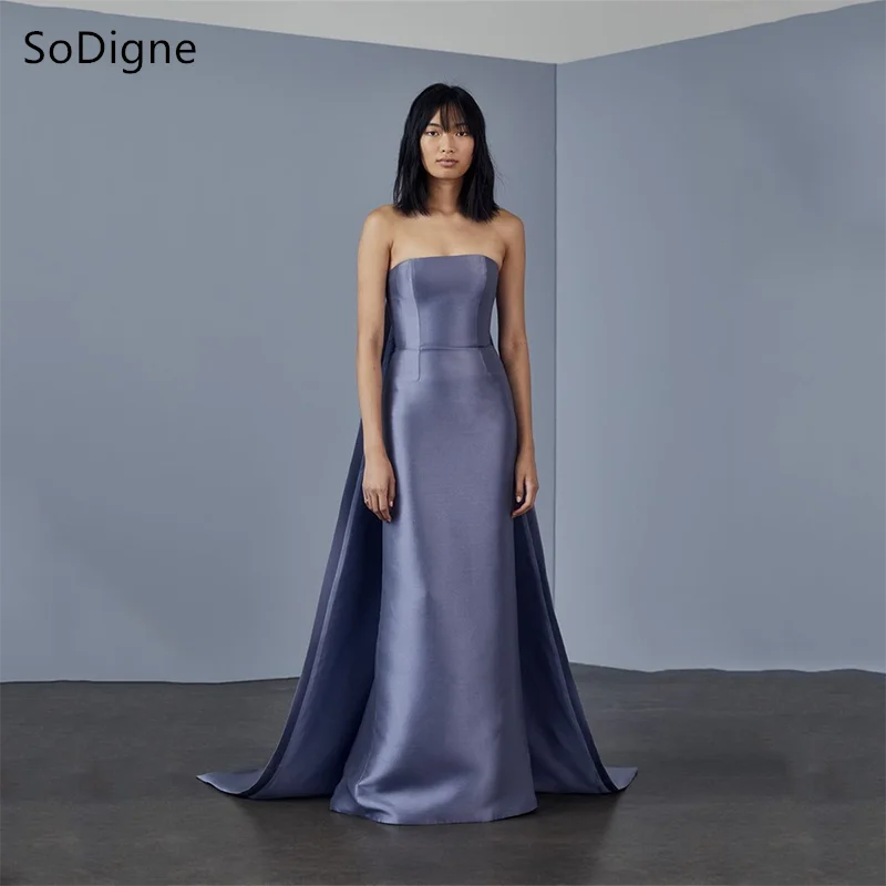 Атласные вечерние платья без бретелек с длинным шлейфом и русалкой, роскошное вечернее платье длиной до пола, очаровательные коктейльные платья SoDigne по индивидуальному заказу