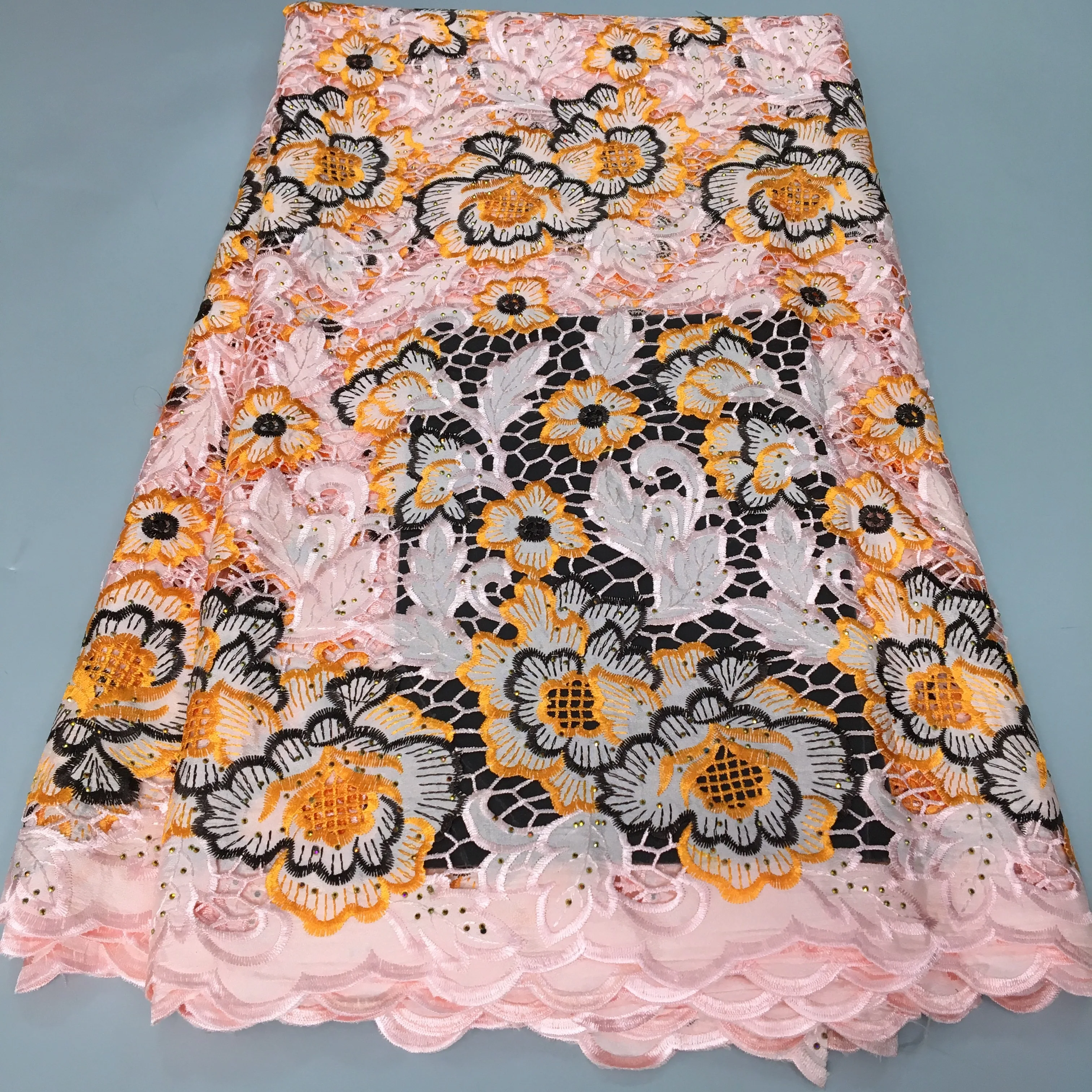 Африканская хлопчатобумажная кружевная ткань с фотографией 2024, Высококачественная яркая Женская кружевная ткань для шитья платья A3941