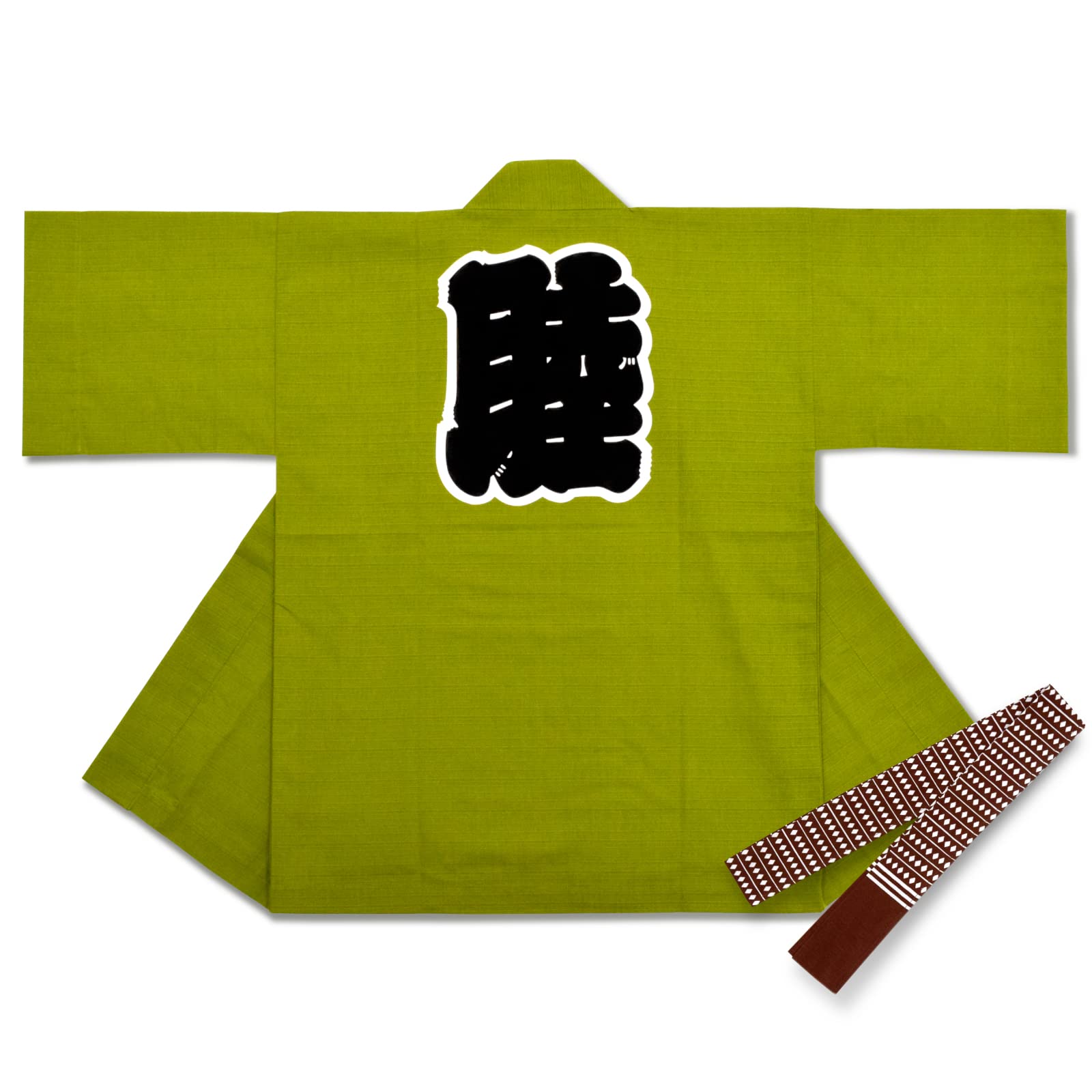 Аяй Однотонный фестивальный хаппи с надписью Сделано в Идеально для фестивалей и детей и взрослых Оби в стиле цумуги, Япония, Мероприятия, (Размер 1, Хаки)