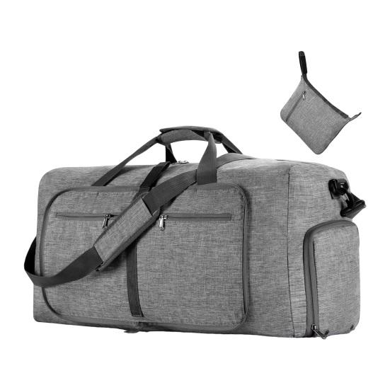 Багажная сумка с отделениями для обуви, регулируемый съемный плечевой ремень, большая вместимость, отличная грузоподъемность, складная водонепроницаемая дорожная походная спортивная сумка серый