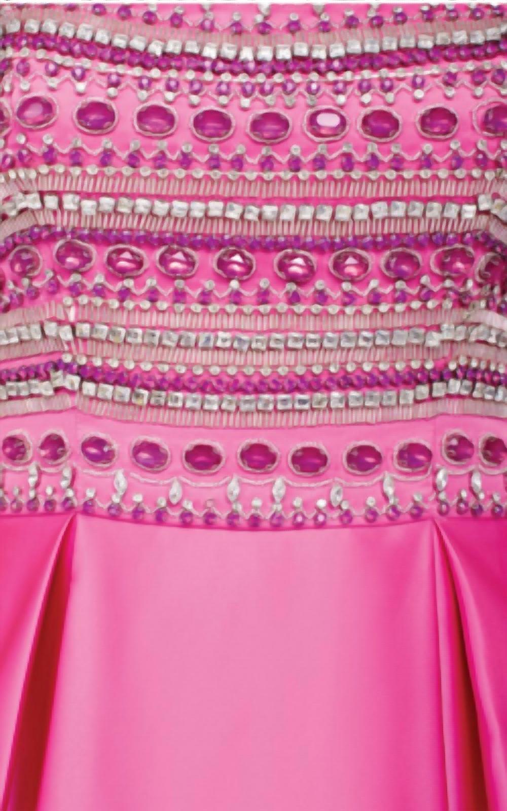 Бальное платье без бретелек с декором в ярко-розовом цвете JOVANI
