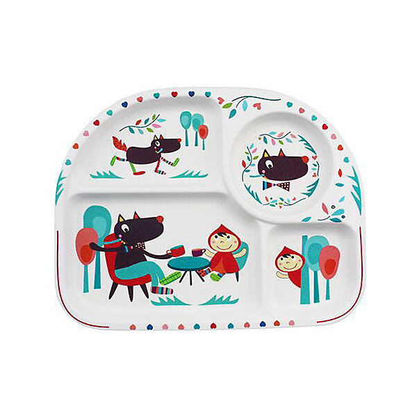 Бамбуковая тарелка с разделителями Ebulobo "Волчонок, Разноцветный, Бамбуковая тарелка с разделителями Ebulobo "Волчонок"
