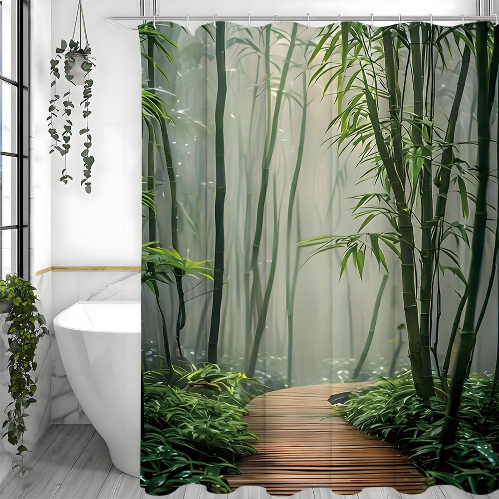 Бамбуковая шторка для душа, Зеленый лес, Спа, Винтаж, Натуральный, Японский, Азиатский стиль, Шторки для душа для ванной с крючками, Водонепроницаемые 150*180cm