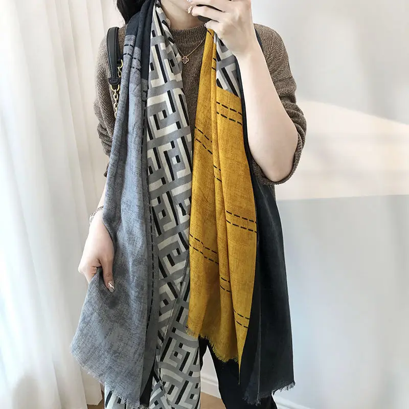 Бандана женская с геометрическим принтом, роскошная многофункциональная элегантная теплая тонкая, в стиле ретро, Мягкая Повседневная шаль,...