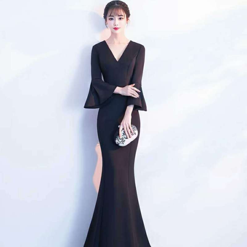 Банкетное вечернее платье, однотонное, тонкое, сексуальное, длинное, с рыбьим хвостом, облегающее, тонкое, для показа, вечернее платье, женское платье для выпускного вечера