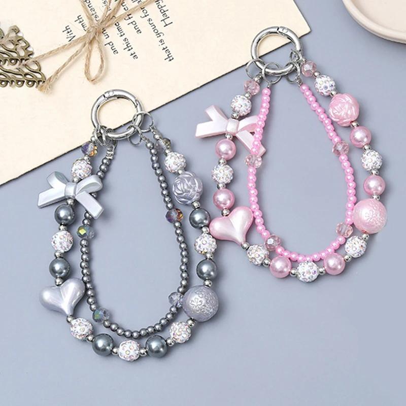 Бант Сердце Мобильный Телефон Ремешок Запястье Двойная Цепочка Девушка Женщина Чехол Мобильный Телефон Модный Подвеска Анти-Потеря Ремешок Веревка розовый