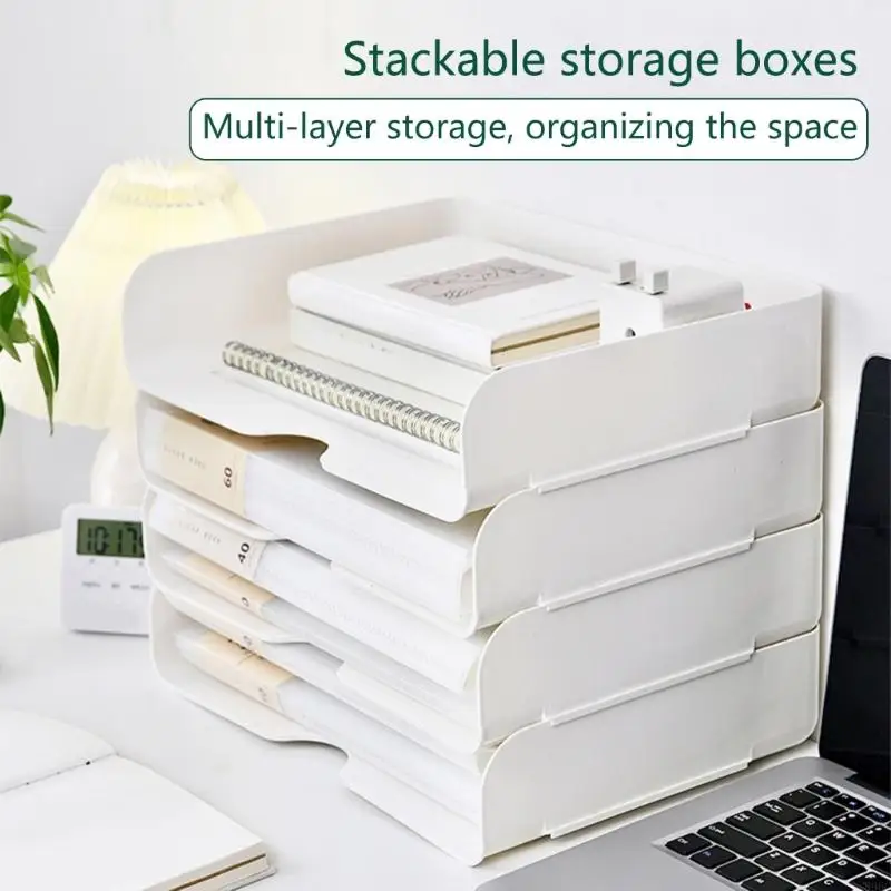 Space Saving File Letter Tray Desktop Document Organiser Stackable Document Letter Tray Storage Box for Office Supplies 896C