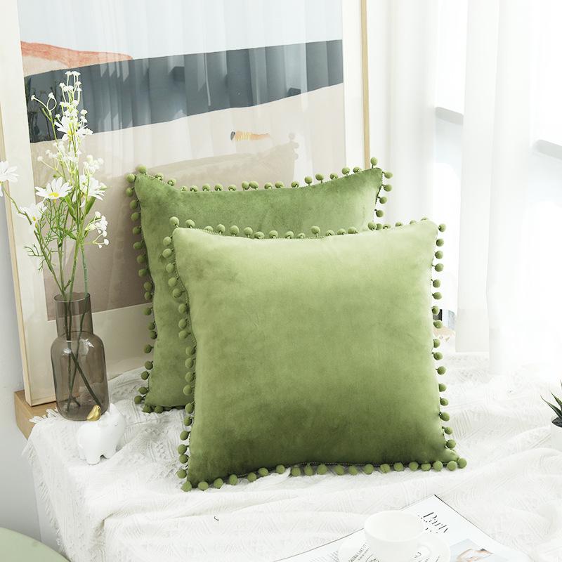 Бархатная наволочка с помпоном - Современная минималистичная однотонная наволочка 45x45 cm