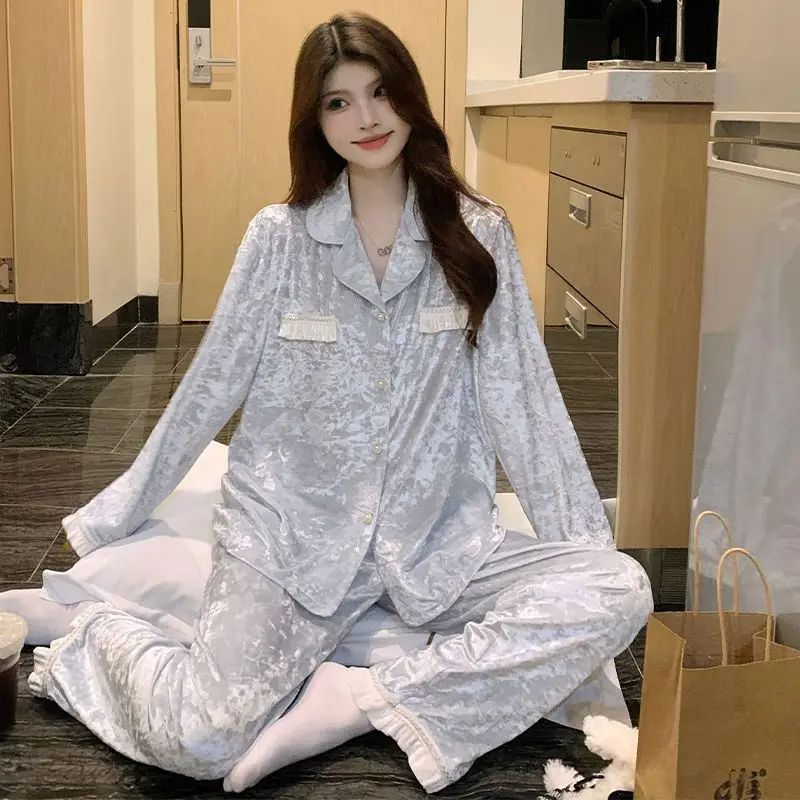 Бархатная одежда для отдыха для девочек, весна, осень и зима, новая модель, милая минималистичная модная пижама с героями мультфильмов, комплект домашней одежды с допамином