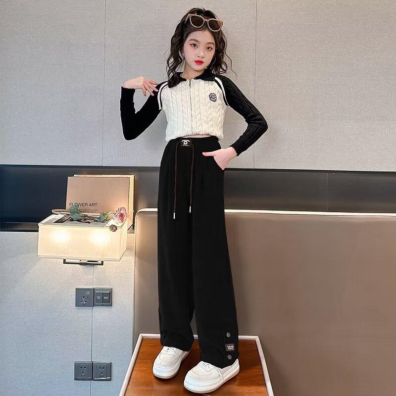 Бархатные брюки широкого кроя для девочек 2023 года: Стильный, утолщенный, идеально подходит для осени/зимы для детей среднего и старшего возраста 150cm