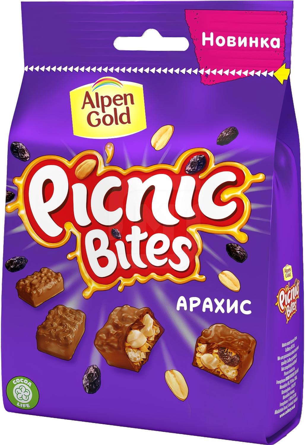 Батончик Picnic Bites шоколадный карамель арахис изюм пшеничные хлопья