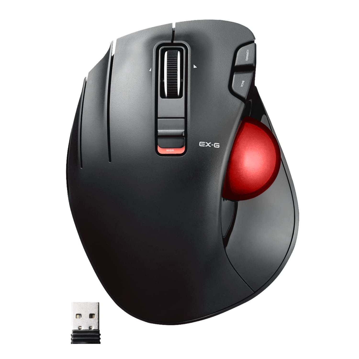 Бездротова трекболова миша ELECOM (Великий палець) для лівої руки, червона куля, 6 кнопок, функція нахилу, ігровий оптичний сенсор, чорний M-XT4DRBK-G