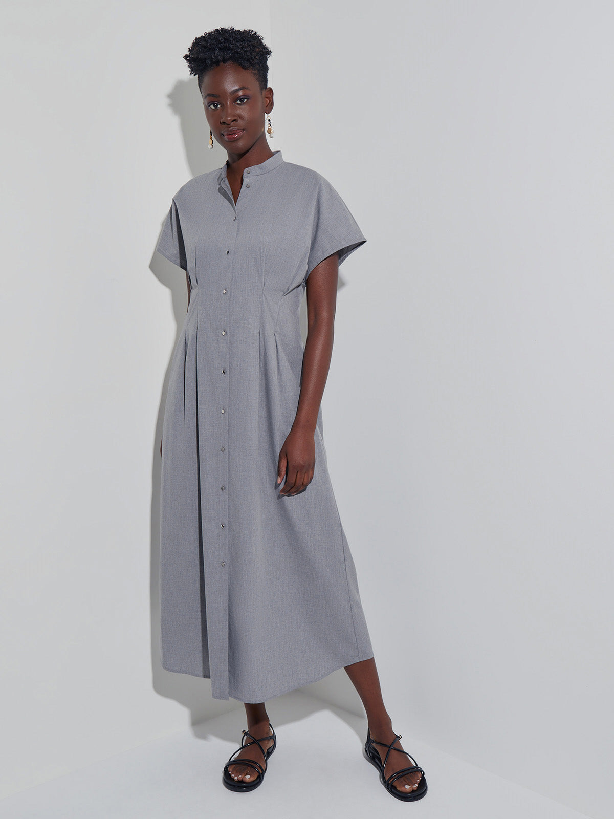 Приталенное макси-платье с запахом и расклешенной юбкой - современный крой Misook, черно-белый