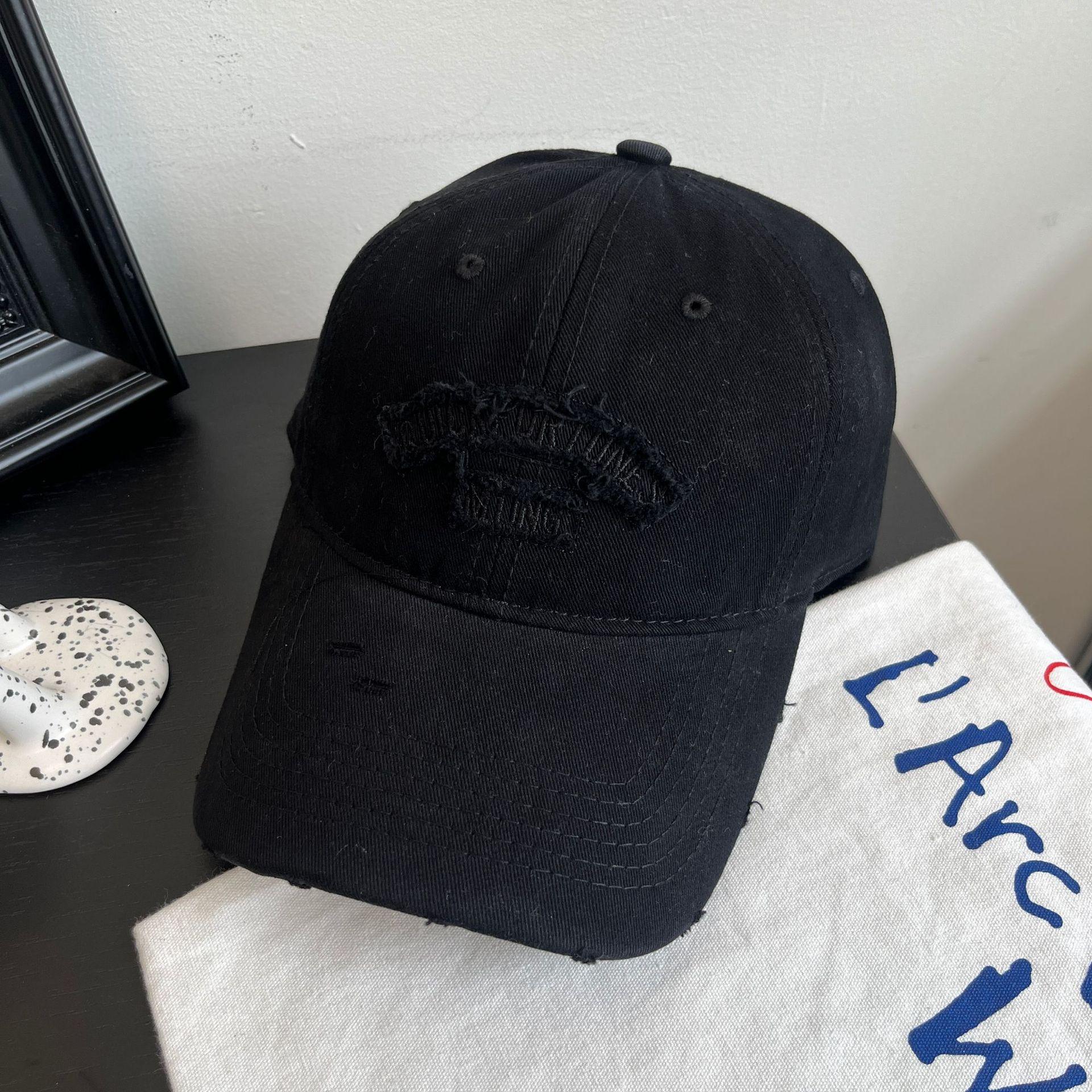 Бейсболка женская весенняя новая рваная старая широкополая шляпа мужская мягкая кепка с изображением лица маленькая вышивка кепка прилив M(56-58cm) чёрный