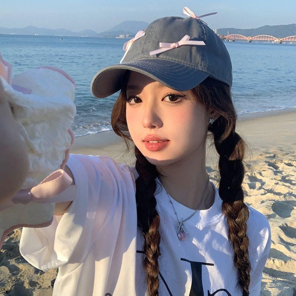 Бейсболка с бантом в стиле ретро, солнцезащитная кепка с козырьком, солнцезащитные женские шляпы, бейсболка с бантом для девочек 1pc