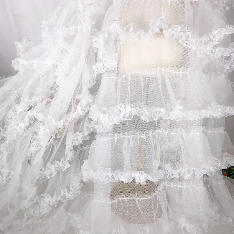 Белая многослойная кружевная ткань, плиссированная сетчатая тюлевая кружевная ткань для платья для девочек, платья на день рождения, платья-пачки, свадебного платья 1 ярда