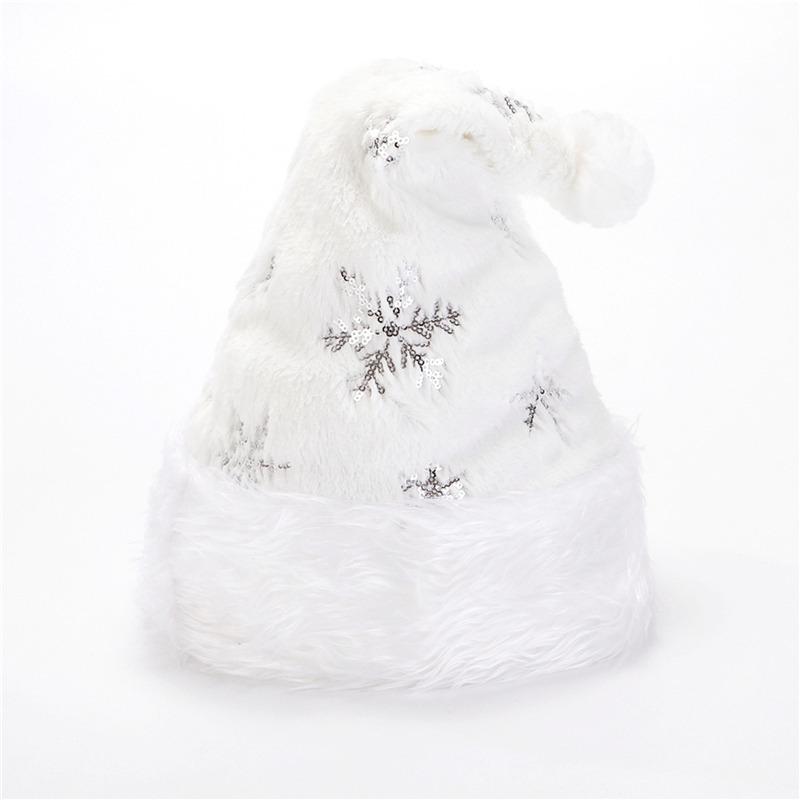 Белая мягкая плюшевая рождественская шапка для вечеринки со снежинками, шапки Санты, белая рождественская декоративная шапка, новогоднее украшение, праздничные принадлежности для вечеринок серебряный