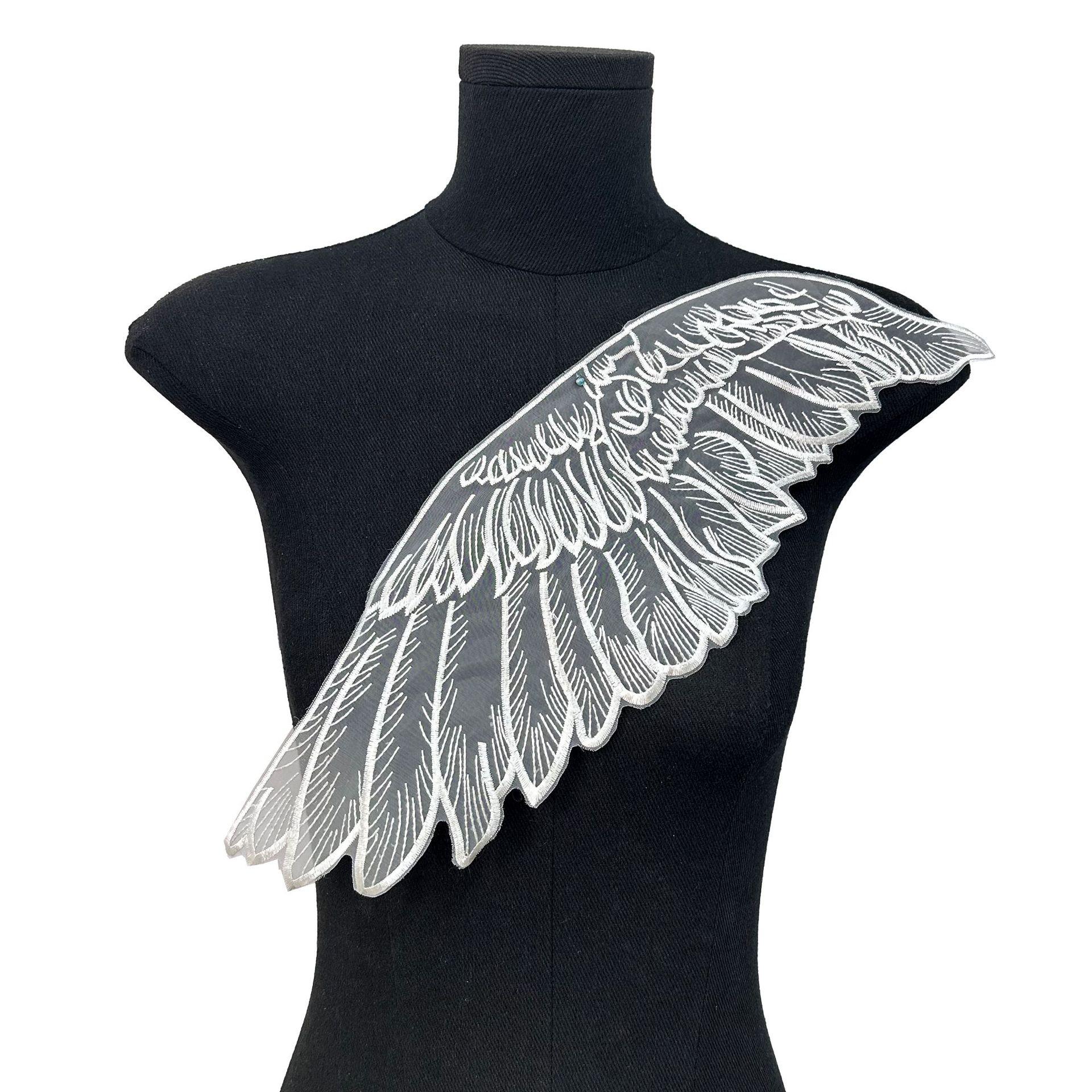 Белая органза Большие крылья Перо Кружево Вышитая тканевая наклейка Платье Одежда для выступлений Аксессуары для одежды Декаль Украшение 66518 white unilateral