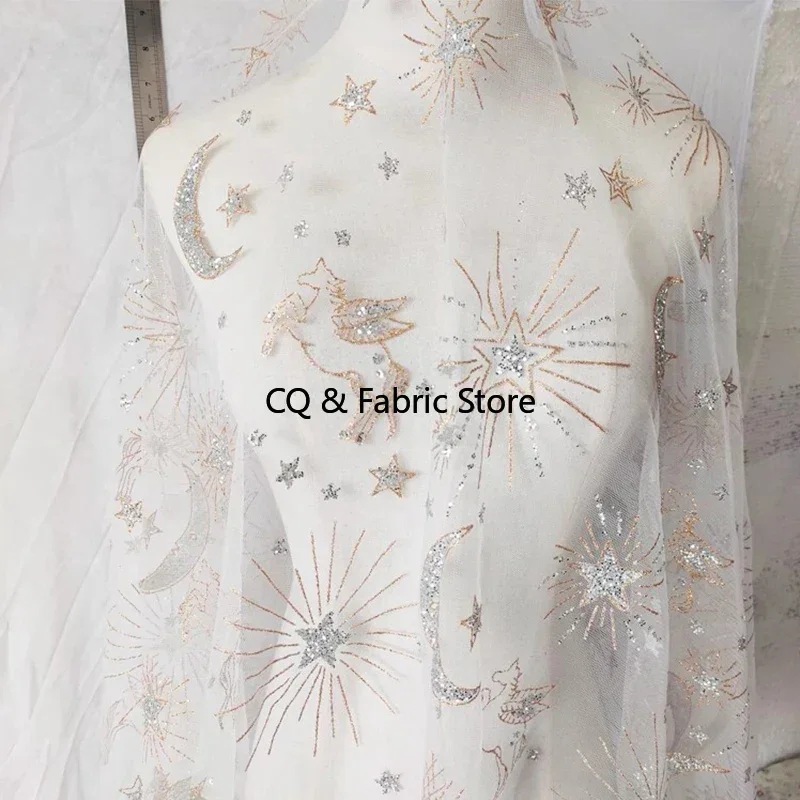 Белая сетчатая пряжа, горячее сверление, лошадь, луна, горячий золотой, серебряный порошок, кружевная ткань для платья, свадебные аксессуары по метрам