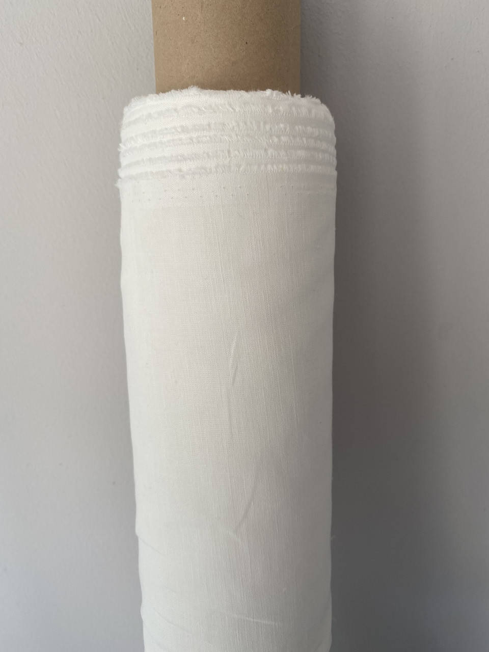 Белая с молочным отливом сорочечная льняная ткань, цвет 0/0, Белый