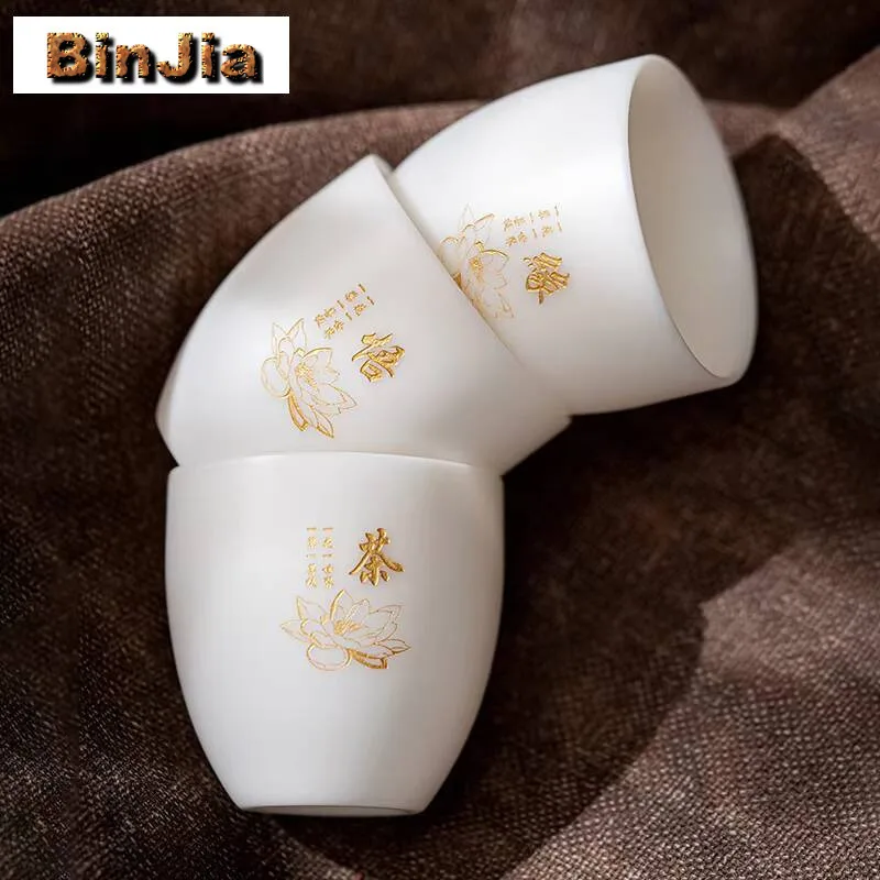 Белая фарфоровая чайная чашка Dehua, 110 мл, простая чашка в стиле дзен, овечий жир, нефритовая чайная чаша, золотая маленькая мастерская, одинарная дегустационная чайная поделка для кунг-фу
