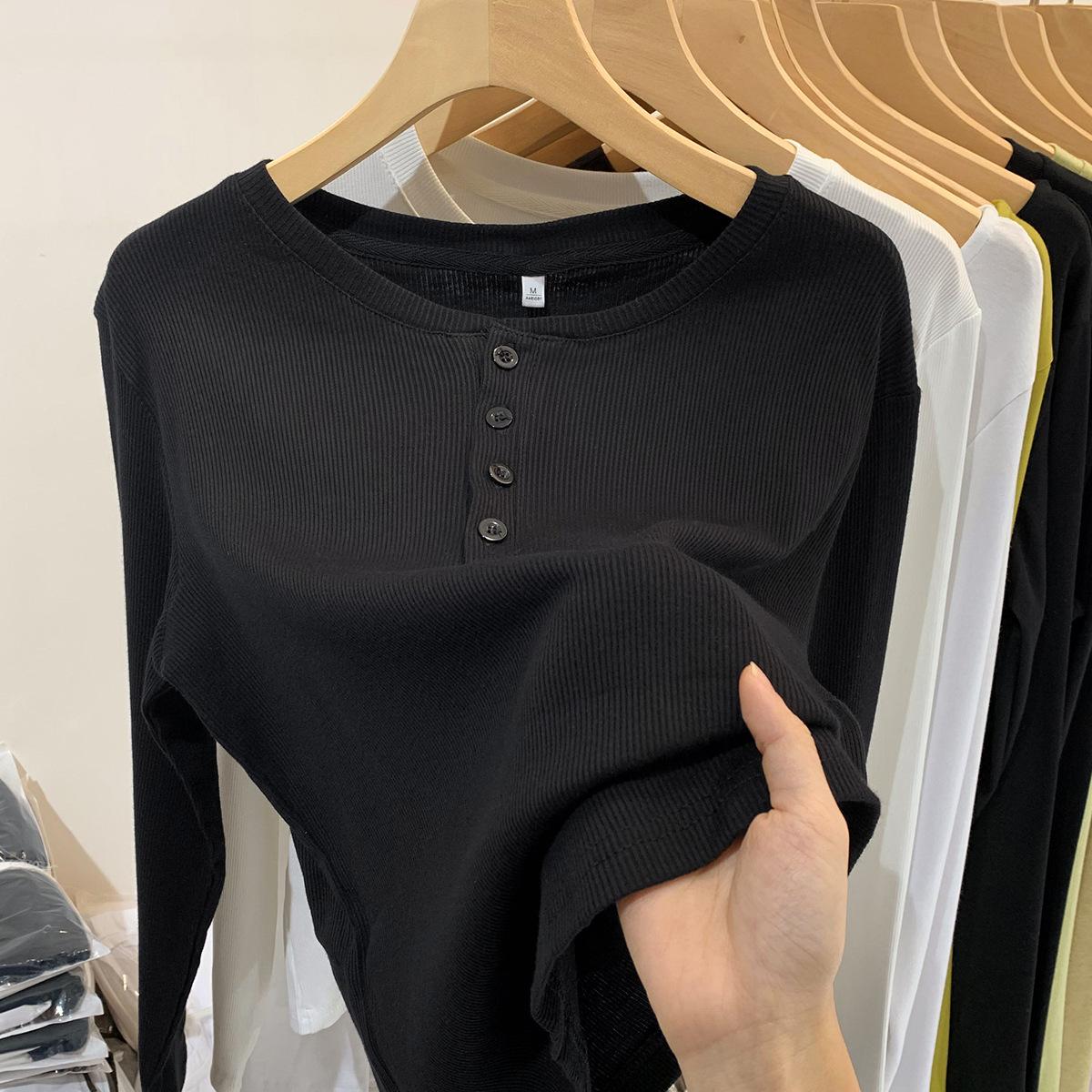 Белая футболка с длинными рукавами для женщин на весну и осень, новый стиль, прошитая низ рубашки, нишевый и универсальный топ с V-образным вырезом XL