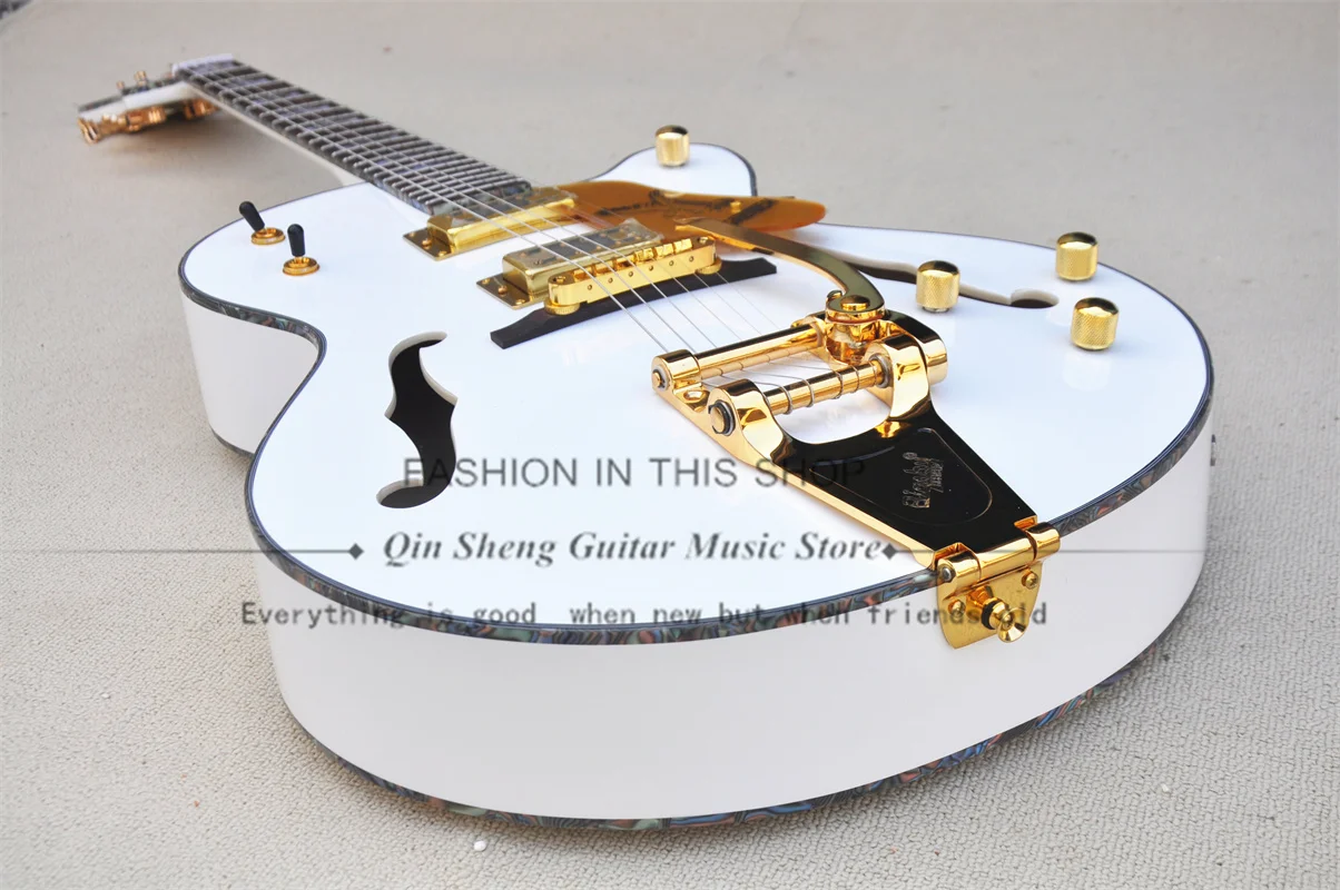 Белая электрическая гитара 6136 гитара полуполый корпус мать ракушка связывающая большая тремоло мост HH звукосниматели золотые тюнеры