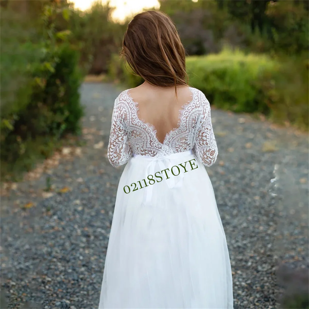 Белое блестящее платье с цветочным узором для девочек по индивидуальному заказу, элегантное бальное платье принцессы для детей, вечеринки по случаю дня рождения, простой бант, длиной до пола, для первого причастия