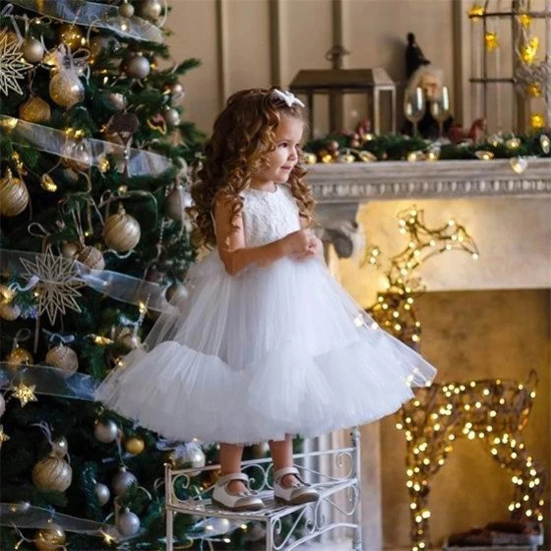 Белое качественное платье Aline для маленьких девочек с цветами, плиссированное женское платье для торжественных мероприятий на день рождени...