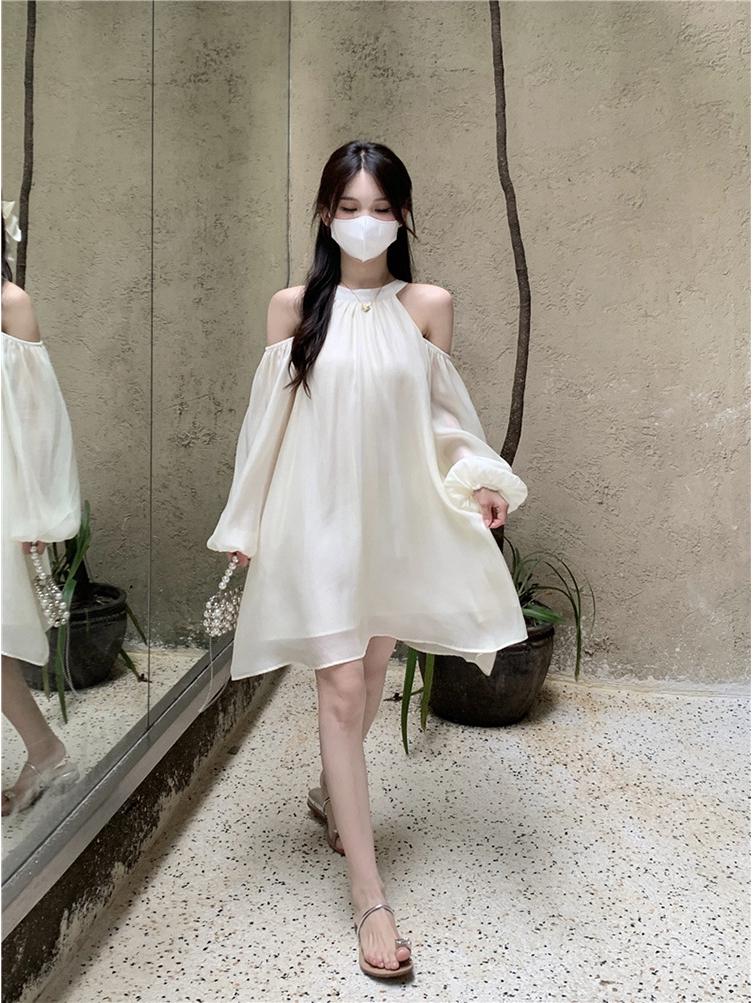 Белое А-силуэтное платье с открытыми плечами и халтер-вырезом - Новинка для лета и осени 2023 Extra Large белый