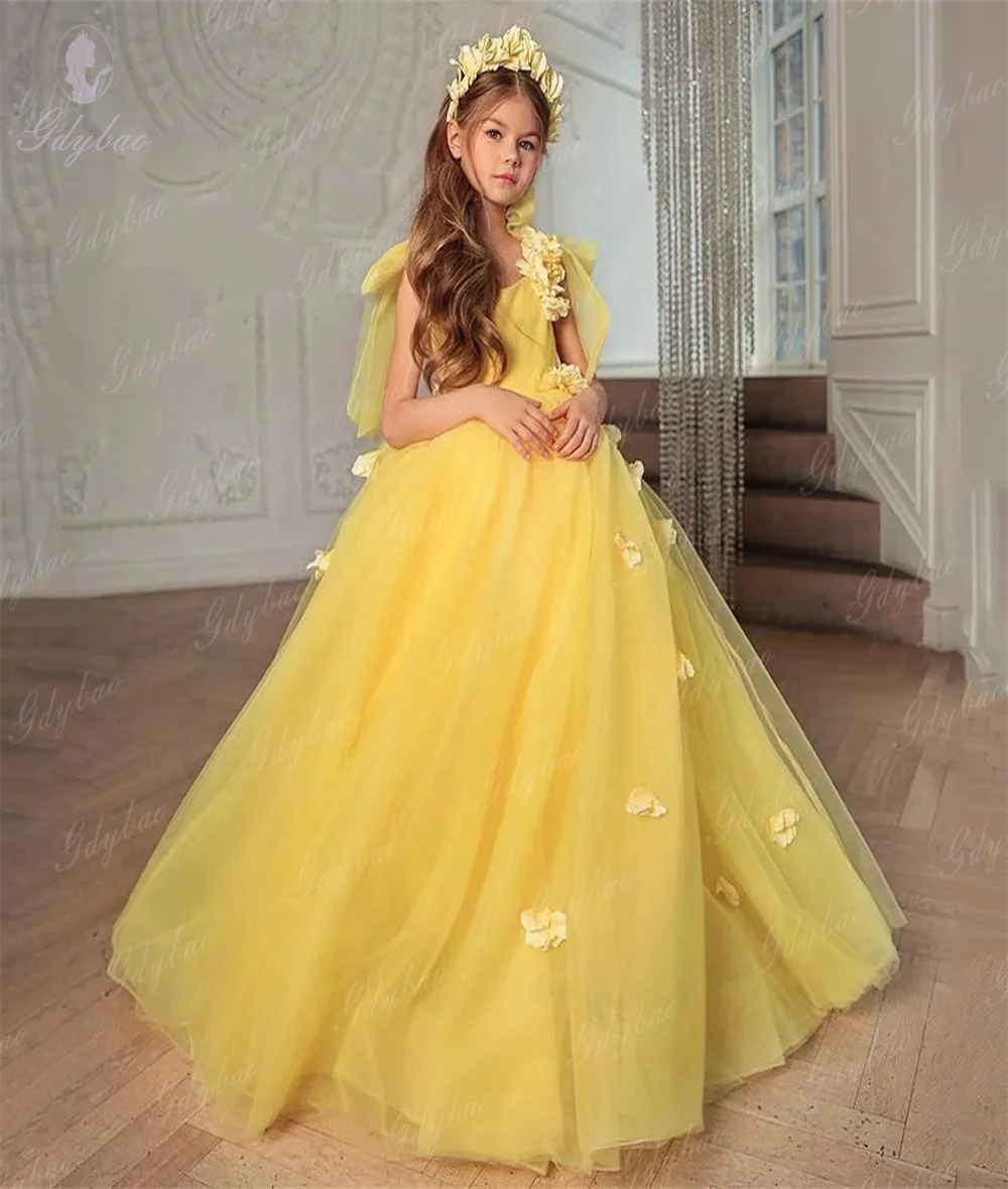 Белое элегантное платье с цветочным узором для девочек, детское платье с пышной аппликацией и открытой спиной для первого причастия, детское платье для активного отдыха на день рождения