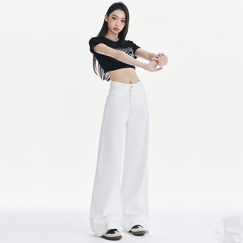 Белые джинсы широкого кроя для женщин на лето, тонкие, новый стиль, универсальные, модные, трендовые, свободные, стройнящие, прямые брюки XL белый