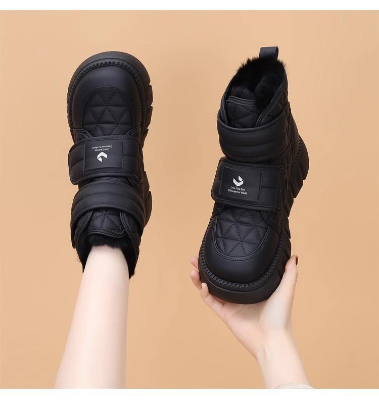 Белые зимние сапоги для женщин, зима 2024, новые студенческие, в милом стиле, бархатные, утолщенные, теплые, на толстой подошве, хлопковые туфли, Северо-восток, нескользящие 40 чёрный