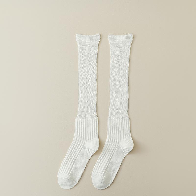 Белые махровые носки для женщин, хлопковые носки на весну и осень, носки до икры, летние тонкие носки до середины икры, в сочетании с маленькими кожаными туфлями для формирования ног 1 pair