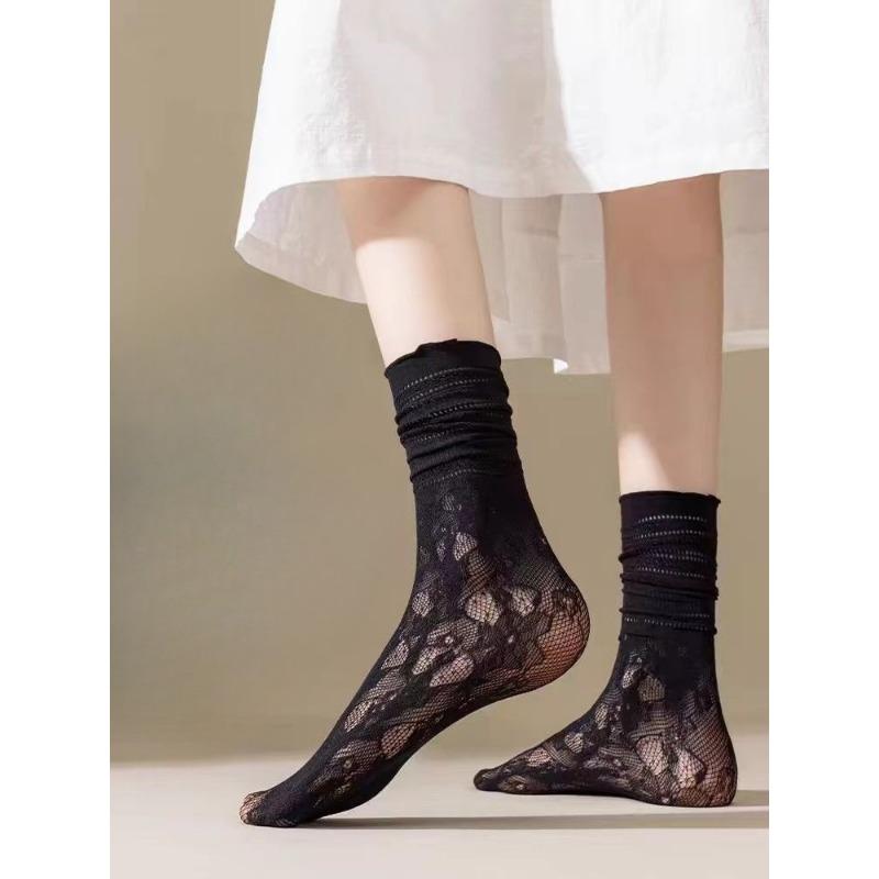 Белые махровые полые носки до середины икры, Тонкие носки, Ледяные носки, Тонкие носки, Кружевные носки, Сетчатое кружево, Лето 1 pair чёрный