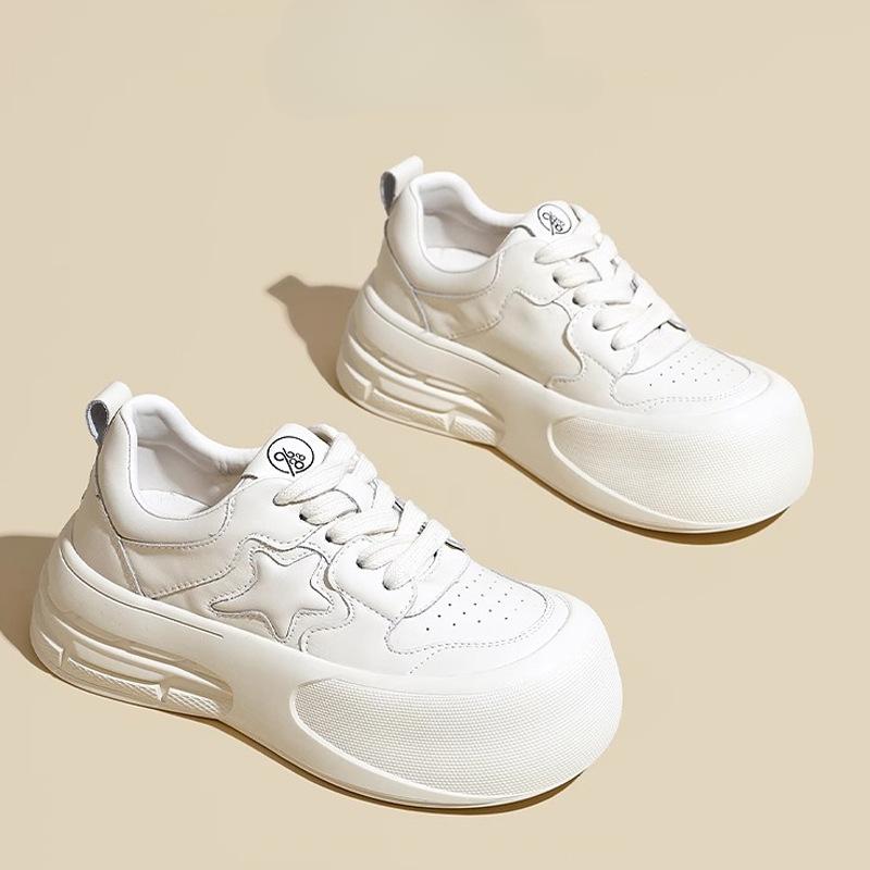 Белые туфли на платформе из натуральной кожи, женская обувь, ранняя весна, новые туфли для увеличения роста, туфли с большой головкой, универсальные повседневные кроссовки 40