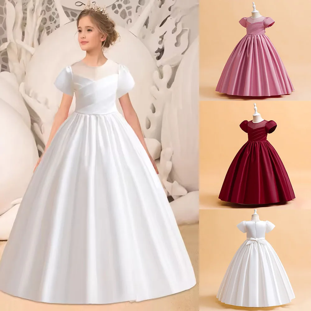 Белые элегантные платья подружки невесты для девочек, платье для свадебной вечеринки, длинное вечернее платье для церемонии дня рождения, летняя детская одежда