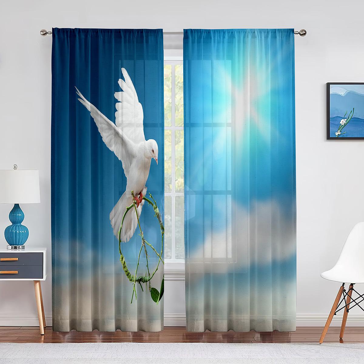 Белый голубь, птица, мир и любовь на Земле, тюлевые шторы с лентой для декора гостиной, шифоновая прозрачная вуаль, занавеска для кухни, спальни 1 PCS W100XH250cm&Grommet Top