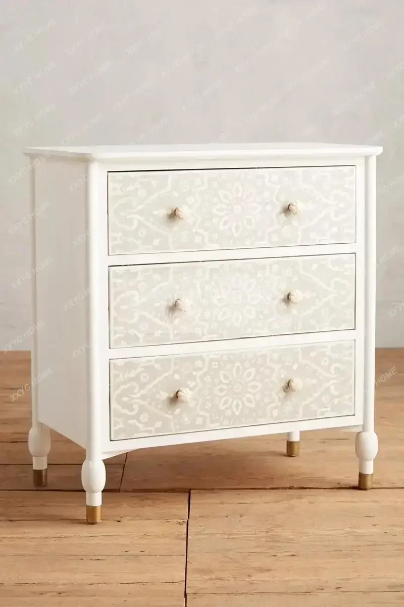 Белый комод во французском стиле ретро, шкаф для хранения, ручная роспись, окрашенный ящик, шкаф с тремя ведрами, шкаф для сувениров