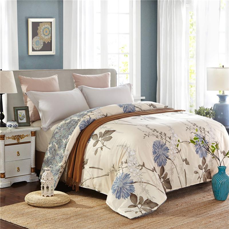 Белый пододеяльник с цветочным растительным узором 100% хлопок Простой пододеяльник с ботаническим принтом на молнии Размер Queen King Постельное белье 160x200cm Single 1Pc